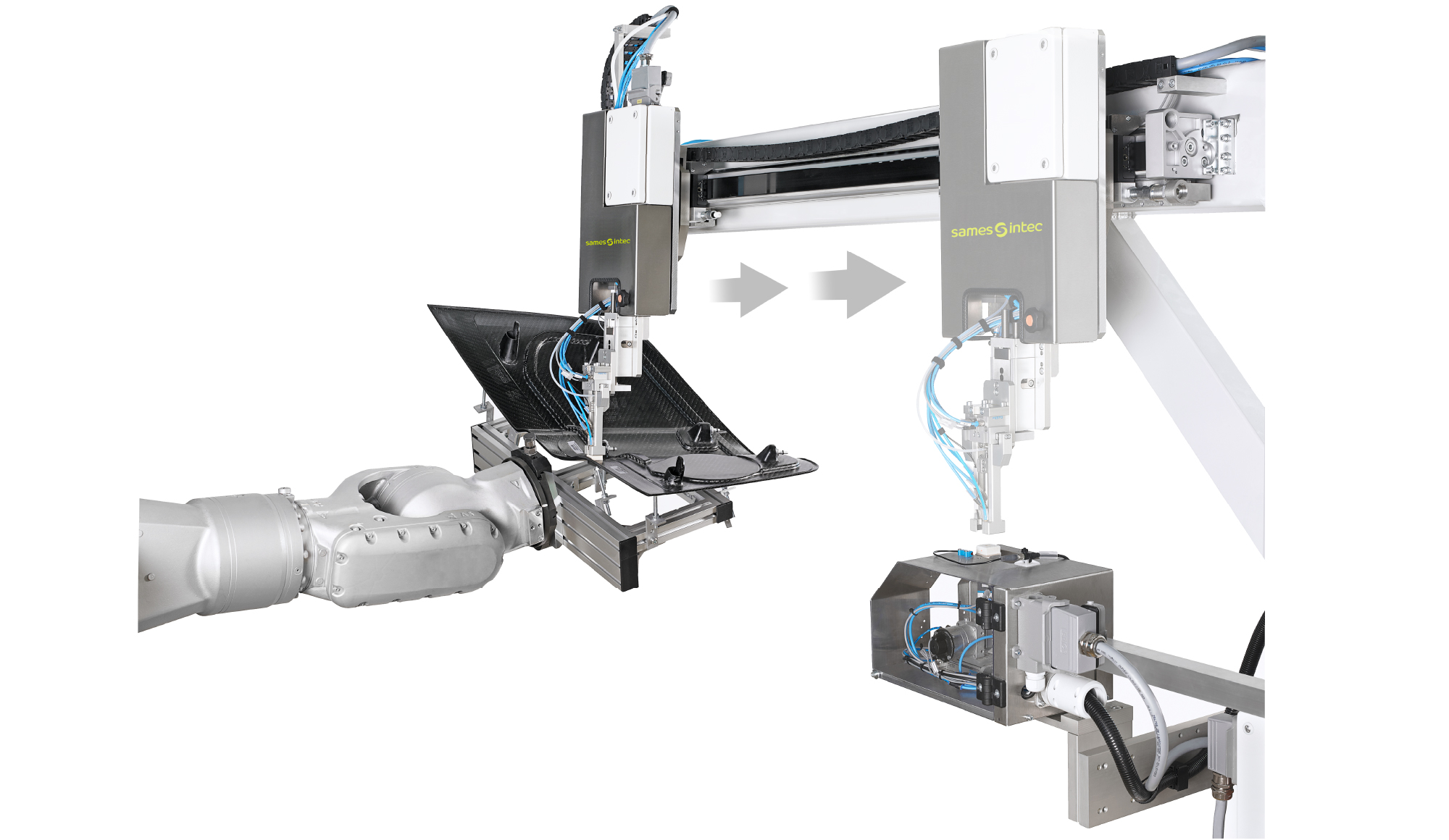 The patented ATMR cleaning system is used for both cleaning component surfaces and applying functional fluids before the application of adhesives and sealants. If grease, oil, or dust residues are present on the component, this can impair the adhesion of the material.