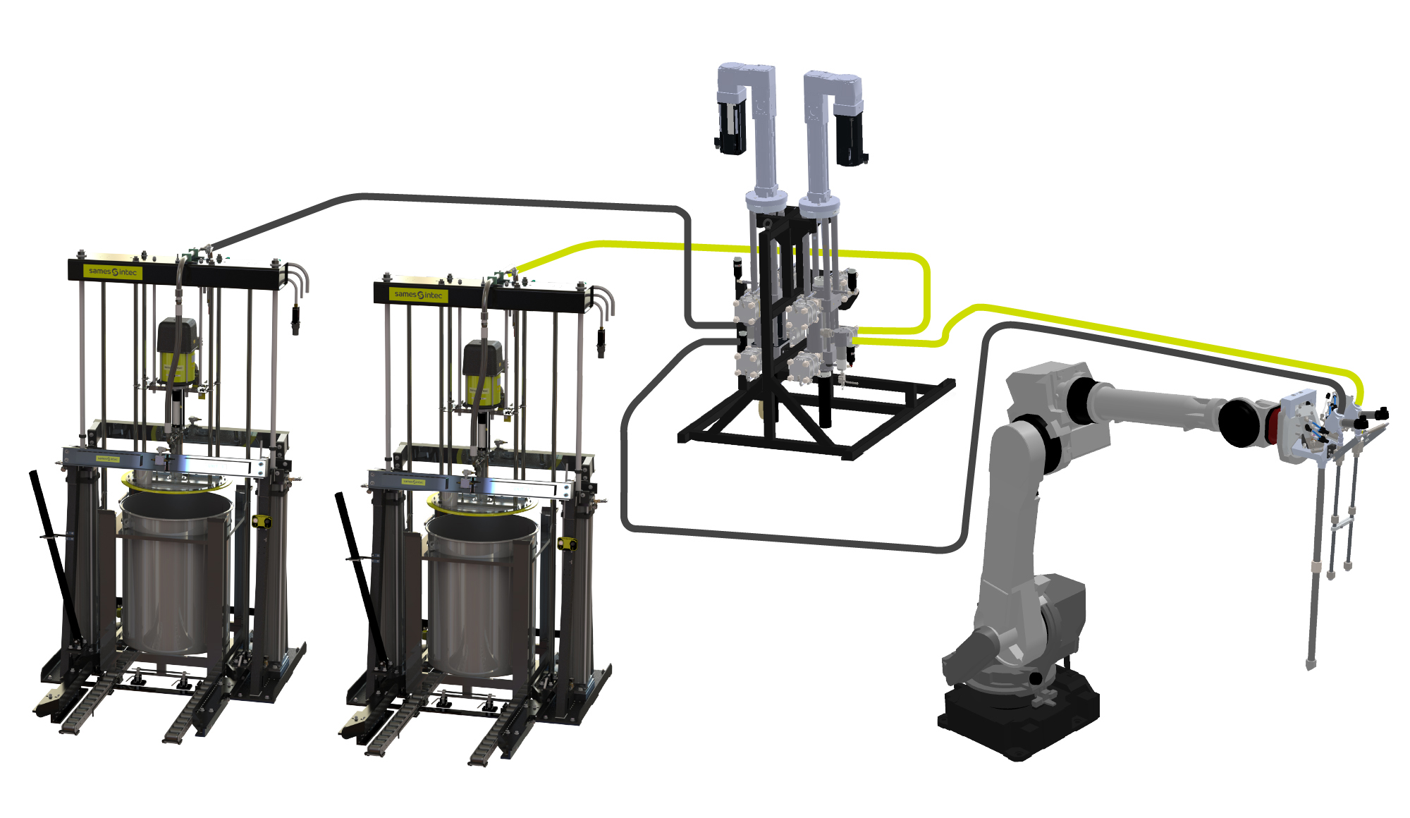 Each of endless dosing unit is able to reach 6 L/min, for a total of 12 L/min with a 1:1 ratio.The application head has a 8 mm valve size, and is able to resist up to 300 bar (4350 psi). -
